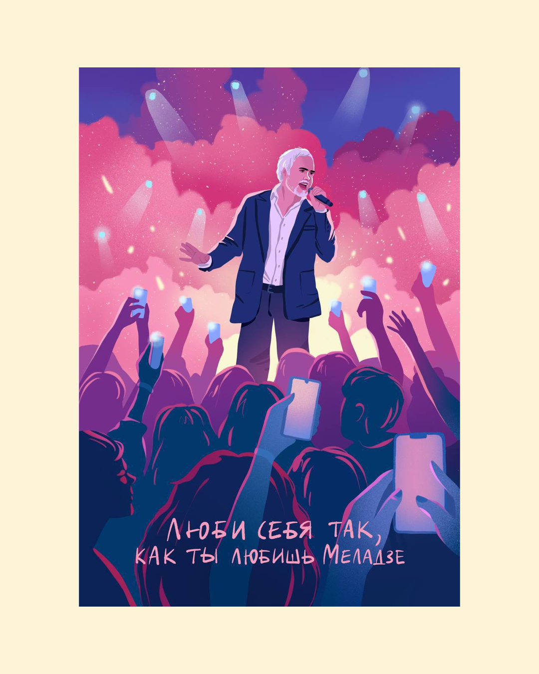A bold and emotional 10×15 cm art postcard inspired by live music, devotion, and the power of feeling seen in a crowd. The illustration captures a singer on stage, bathed in lights, with the audience holding up glowing phones — a modern concert ritual filled with love, admiration, and shared emotion. The handwritten message adds a touch of humour and tenderness, turning this postcard into a statement piece about self-love, passion, and cultural icons. Printed on premium thick cardstock with a smooth matte finish, it’s perfect as a gift for music lovers, pop-culture fans, or anyone who appreciates expressive, contemporary illustration with character and attitude.